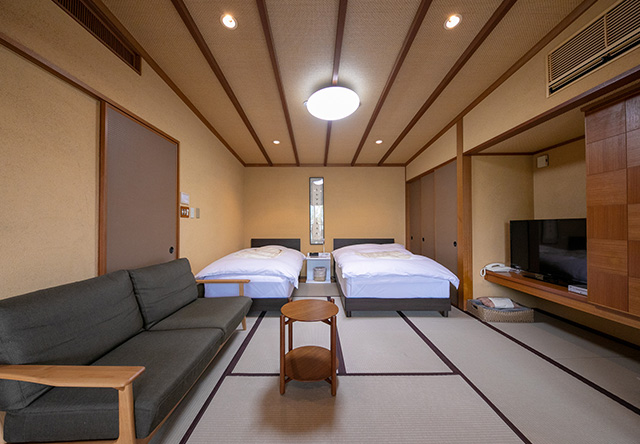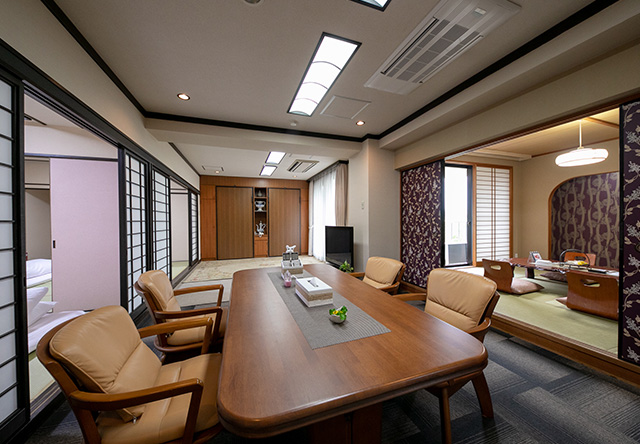 お部屋内で1階・2階に分かれ、和室8帖+洋間19.8平米のそれぞれが広々とした空間が楽しめるお部屋です。