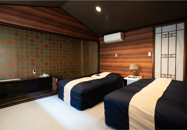 収納式のベッドもあり、グループでも安心です。