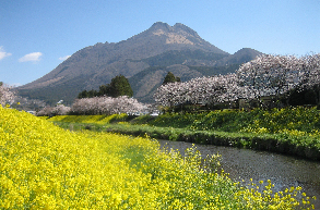 くじゅう連山などを背景に自然が満喫できる花公園です。
