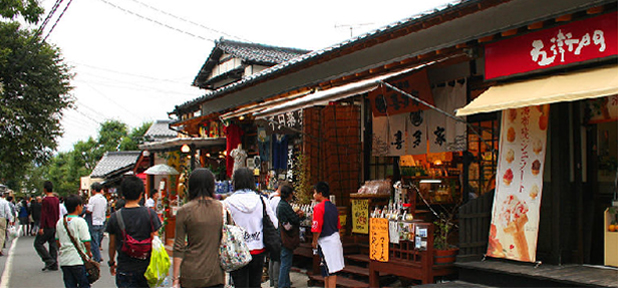 全国屈指の観光地。お土産屋さんもズラリと並ぶ街並み。