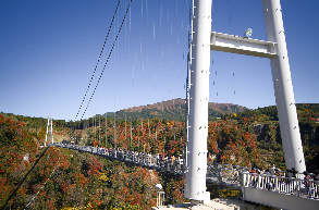 鳴子川渓谷に架かる日本一の規模を誇る吊橋です。