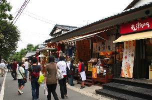全国屈指の観光地。お土産屋さんもズラリと並ぶ街並み。